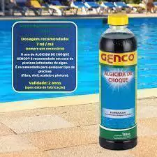 Algas são organismos microscópicos que se desenvolvem na presença de água e luz solar, e que podem, rapidamente, tornar a água da piscina verde e turva, com pisos e paredes escorregadias . Algas pretas aparecem como manchas escuras nas paredes e fundo da piscina e nas juntas dos azulejos. Algumas espécies formam colônias de cor amarelada (mostarda), ou marrom. A infestação de algas geralmente acontece no verão, após chuvas intensas, quando residuais de cloro se encontram abaixo do nível recomendado. A cloração de manutenção com residuais de 2 a 4 ppm de cloro livre, presentes na água o tempo todo, com pH entre 7,4 e 7,6 constituem a melhor prevenção contra o desenvolvimento de algas. Mas, depois que elas se desenvolvem somente um tratamento de choque consegue eliminá-las. O ALGICIDA DE CHOQUE GENCO® é uma composição à base de íons de cobre quelados, altamente eficiente no combate a infestação de algas já formadas em piscinas.